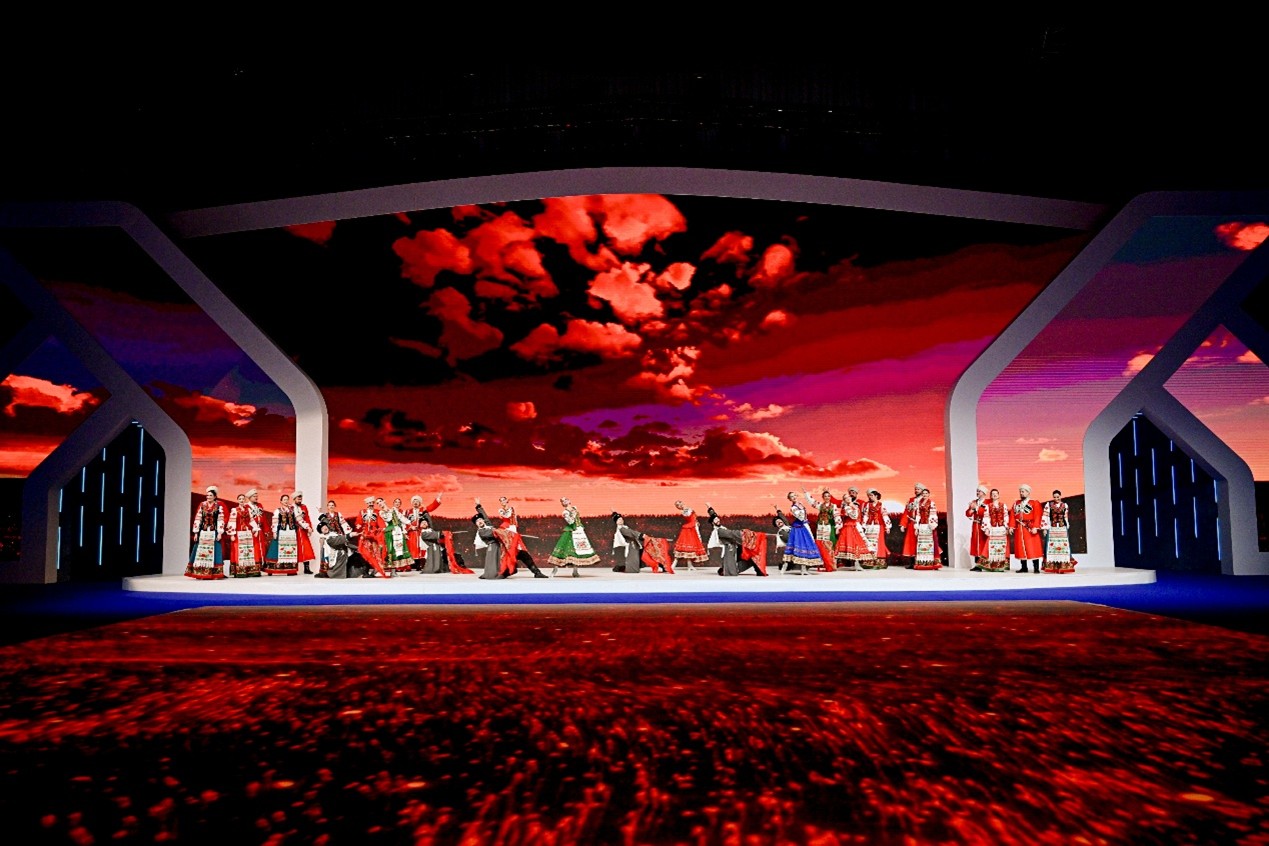闭幕演出以“韵律与共鸣”为主题,通过中俄艺术家与运动员的跨界合作,呈现了一场融合体育荣耀与艺术美学的视听盛宴。